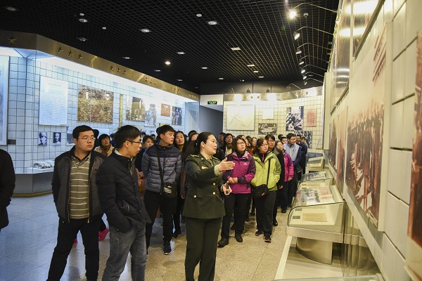 5日上午,一行人参观了平津战役纪念馆,循着先辈的足迹,踏着人民解放军的脚步,广大党员同志接受了一次鲜活的爱国主义党性教育。在纪念馆里,大家认真聆听了讲解员的讲解,观摩了毛泽东主席关于平津战役决战方略的手稿,兴致勃勃地观看了将士们生前使用过的武器和生活用品,再现了当年革命先辈的革命精神,大家的缅怀和敬仰之情油然而生。