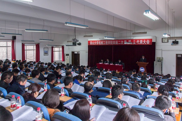 学院院长张立杰向大会作了《凝心聚力,改革创新,全面推进"一流学科"建设》的报告。报告全面回顾了学院2016年的各项工作,肯定了学院在党建与精神文明建设、本科教学与师资队伍建设、学科建设与研究生培养、科研工作、学生工作、工程训练中心工作、工会工作等七个方面取得的成就,并客观地分析了学院存在的不足。报告同时对2017年十项重点工作进行了详细部署,指出今年是学校、学院综合改革和“双一流”建设的关键时期,学院将紧密围绕“十三五”发展规划目标,以“一流学科”建设为导向,以人才培养为中心,全面推进学院的各项工作。希望全院教职工与学院领导班子一起,解放思想,凝心聚力,改革创新,抢抓机遇,全力推进学院各项事业更好发展,为创造更加美好的机械工程学院而努力奋斗。同时,大会听取了学院工会主席郝海滨作的《履行职责,创新思路,为学院发展增添活力》工会工作报告。