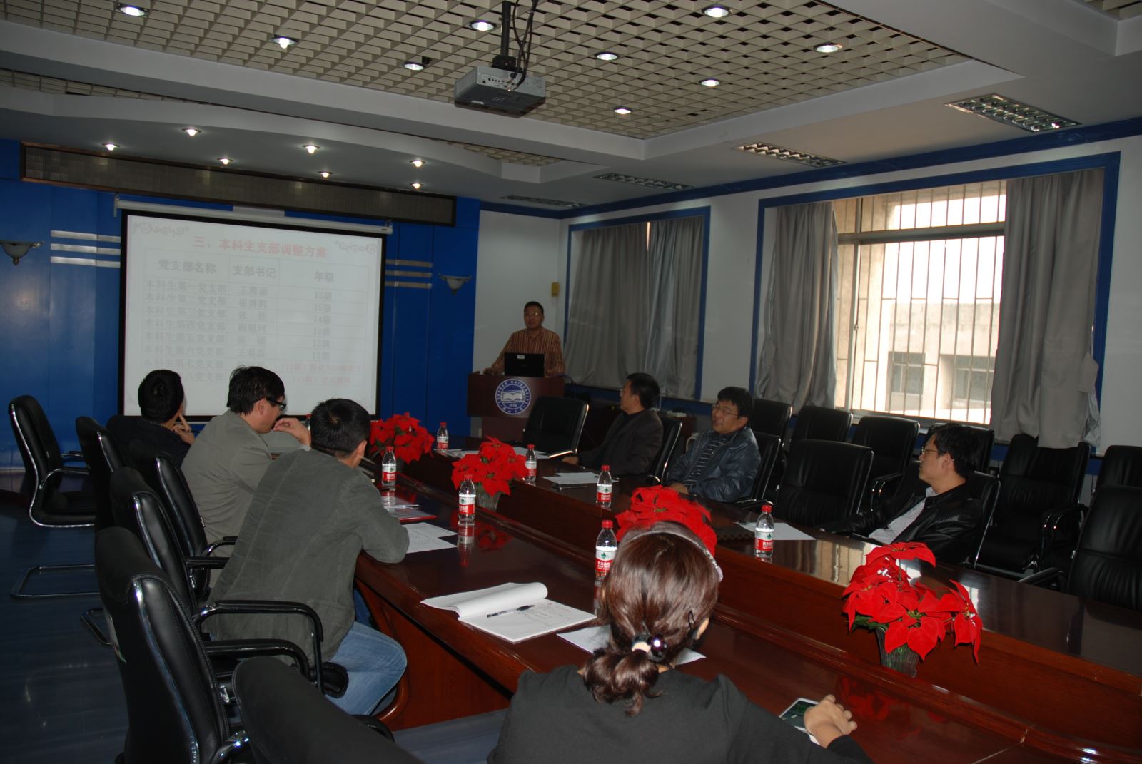 会上,学院分党校办公室负责人王建洲汇报了程青红等5名失联党员恢复党员身份的情况、为孙崇同志重新办理入党手续的说明和学生党支部调整方案。在学生党支部调整方案中,根据实际情况,拟将本科生党支部由8个调整为7个;研究生拟以系部为单位设立党支部,由原来的42个调整为15个,每个党支部下以课题组为单位设立党小组。经与会委员表决,一致通过了学生党支部调整方案。