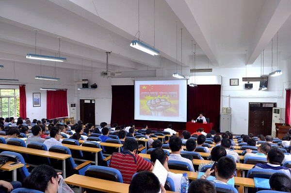 陈步伟老师以习近平治国理念的提出为背景,指出习近平总书记的治国理念在“三个代表”和科学发展观的基础上,更是以“中国国情”为基础,以“中国问题”为导向,以“中国发展”为主线,提出了诸多科学的实践理念,为中国特色社会主义事业指明方向。在此基础上,从习近平“大事记”、习近平治国理政思想的内在意蕴与独特之处和习近平治国理政的未来预测三个方面进行了深入解读,对“中国梦”、“两个现代化”总体目标、“三个自信”和“三个意识”、“四个全面”战略布局规划、“五大发展理念”等关键“大事记”的内在意蕴进行了系统全面的分析,提炼出习近平为民、务实、大局的治国特点,强调习近平整个治国理念和体系的核心就是要凝聚中国力量,冲击现实困局。陈步伟老师用扎实、专业的理论知识结合诸多现实的热点问题使整个报告丰富、深刻、精彩,在场的师生全神贯注地听取了报告。