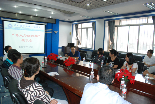 为深入贯彻落实学校“三严三实”专题教育实施方案和《关于开展“立德树人 教书育人”师德主题教育月活动的通知》精神,学院于9月17日下午在机械馆301会议室举办了青年教师座谈会,学院2014年以来新入职及35岁以下的青年教师参加了会议。