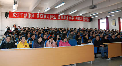 学院党委书记高殿荣就学院深入开展党的群众路线教育实践活动作动员报告。他传达了校党委书记孟卫东同志在全校教育实践活动动员大会上的讲话精神,对深入开展党的群众路线教育实践活动的重要意义、目标要求、主要环节等方面进行了安排部署。