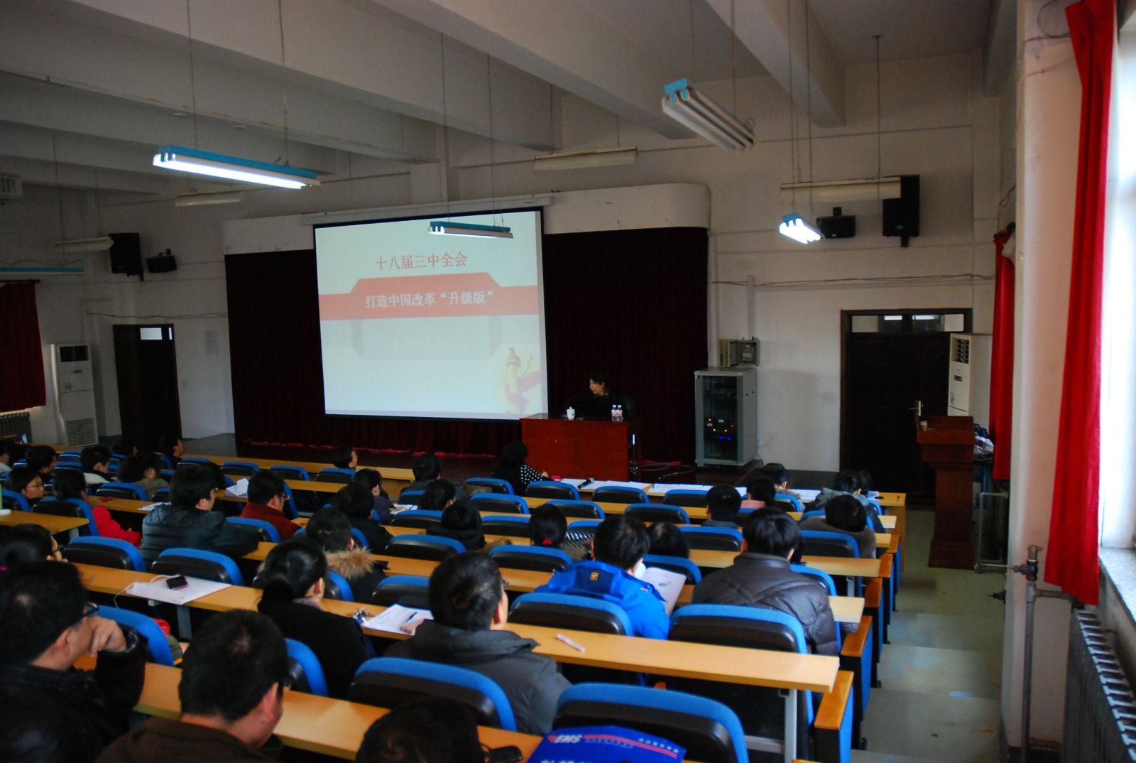 12月19日14:00学院党委邀请马克思主义学院王新华教授在机械馆J3报告厅做了学习领会党的十八届三中全会精神的报告,学院全体教工党员参加了报告会。 报告从党的十八届三中全会召开的背景、意义、内容、改革保障、与以往改革的区别与联系五个方面深入阐述了党的十八届三中全会精神,报告会风格活泼,内容精彩,深受全体教工党员的好评。 此次报告会使学院广大教工党员更加深刻地领悟了党的十八届三中全会精神,认清了今后国家改革发展的形势和方向,提高了广大教工党员的政治素养和觉悟。