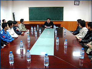 才老师首先对同学们这么晚还能全体来参加会议表示高兴。他在宣读完党委关于开展党建工作的通知之后,深入细致地给同学们讲解了上述七项内容的含义并谈了自己的理解。才老师的话内涵深远又不失风趣,令同学们受益匪浅,感慨万千。他们都积极踊跃地发表了自己的看法并提出了意见和建议。