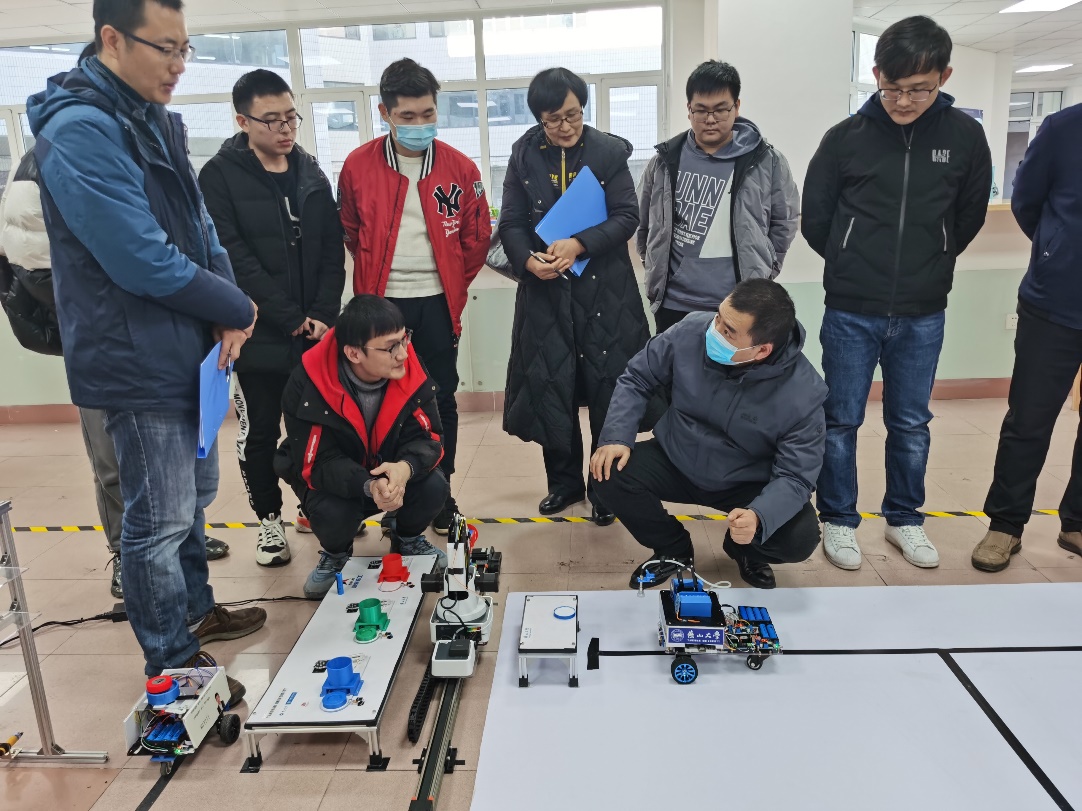 金海龙在现场进行观摩指导,详细询问了学生的设计方案以及课程知识在项目中的应用情况,并对机械电子工程系多学科融合实践、校企联合协同育人教学改革给予了高度肯定。