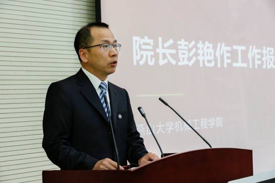 机械工程学院院长彭艳向大会作了题为《稳中求进 乘势而上 聚焦一流学科建设 开启新百年征程》的工作报告。报告从党建与中心工作有机融合、扎实做好内部治理和百年校庆活动、师资队伍、人才培养质量提升、一流学科建设、国际化办学、维护教职工权益等方面客观全面地回顾了2020年学院的主要工作和成绩,同时指出学院在高端人才引培、物理空间拓展、国际化办学等方面仍需大力加强,绩效工资改革尚未有效落地,在专业建设发展、高水平科研成果产出等方面亟待加强顶层设计。