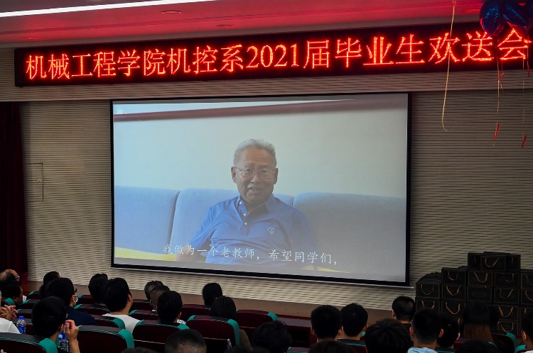欢送会以燕大液压专业发展历程视频短片开场,这段开场勾起了在场师生对老一辈燕大液压人的无比崇敬与感恩之情,初创的艰难与前辈们的付出打动了在场的每一位观众。欢送会随后播放了机控系离退休教师代表、在岗教师代表为2021届毕业生录制的祝福视频。