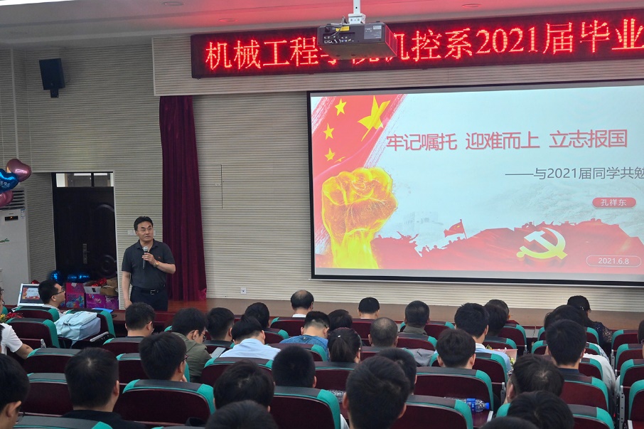 6月8日下午3时,机电控制工程系(以下简称“机控系”)在机械馆J3举办了2021届本科毕业生欢送会。机控系首席教授孔祥东老师、机械工程学院副院长姚静教授、机控系教师代表、本科生辅导员代表与液压专业2021届本科毕业生参加了欢送会。