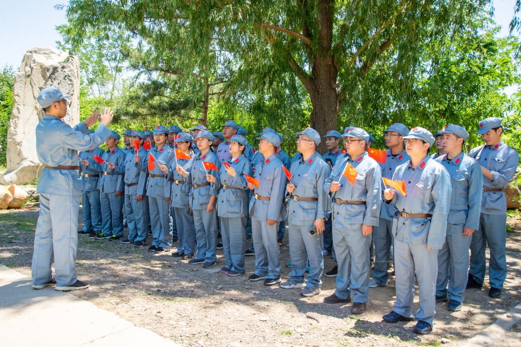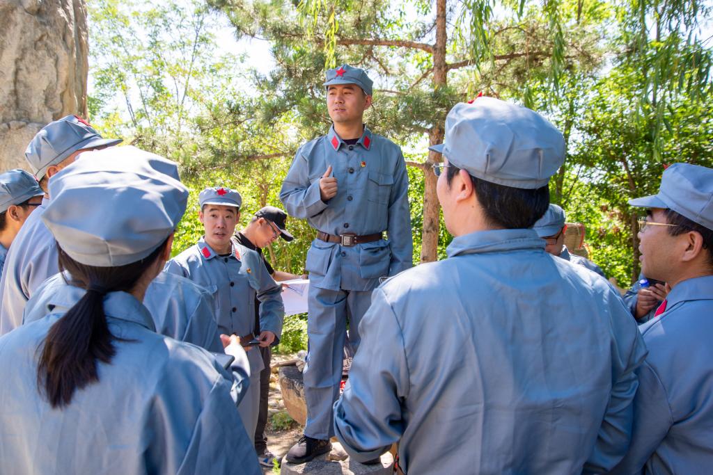 此次活动在秦皇岛市爱国主义教育基地爱国主义教育基地-板厂峪进行。全体人员到达活动地点后,统一更换代表红军的服装,瞬时间就有了红军战争年代的带入感。在培训导师的带领下,全体人员首先来到板厂峪烈士陵园进行缅怀先烈,向英雄致敬,并重温入党誓词。