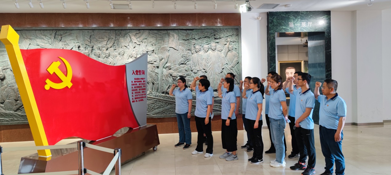 参观学习过程中,老师们在纪念馆前面对党旗举起右手重温入党誓词,让党员们热血沸腾,仿佛重回当初加入党组织的那一刻,更加坚定了自己的理想信念和党性认识。