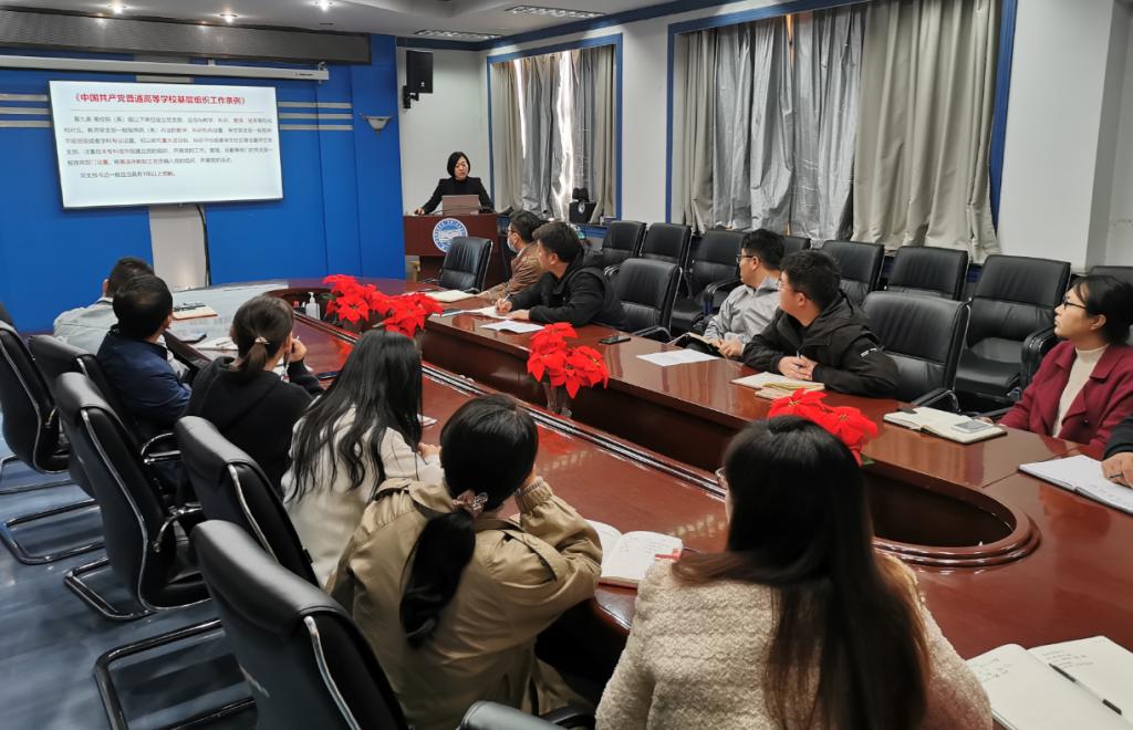 会上,学院专职组织员高俊玲从组织设置、党支部组织生活和《党支部工作手册》等方面做了详细介绍,进一步明确了党支部组织运行的“基本形式”和具体要求。针对《党支部工作手册》中存在的常见问题进行了分析,并做了规范性要求。会议指出,党支部的规范化建设是党建工作的前提和基础,对保障党支部组织生活质量意义重大,党支部负责人必须高度重视。会议要求,各党支部要认真遵守《中国共产党普通高等学校基层组织工作条例》和党支部规范化建设的各项制度、要求,确保学院党支部建设规范化开展。