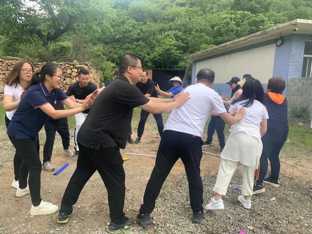 参观学习结束后,大家来到龙潭大院开展户外素质拓展活动。在“同心击鼓”“不倒森林”“能量传递”等项目中,全体人员分为两组,各组团结协作、紧密配合、力争上游,口号声、加油声、欢呼声此起彼伏,比赛过程紧张刺激,展现了团队高度的合作默契,激发了机关教职工的团结协作和昂扬奋进的精神。