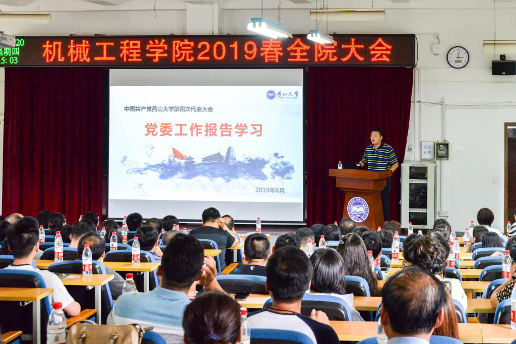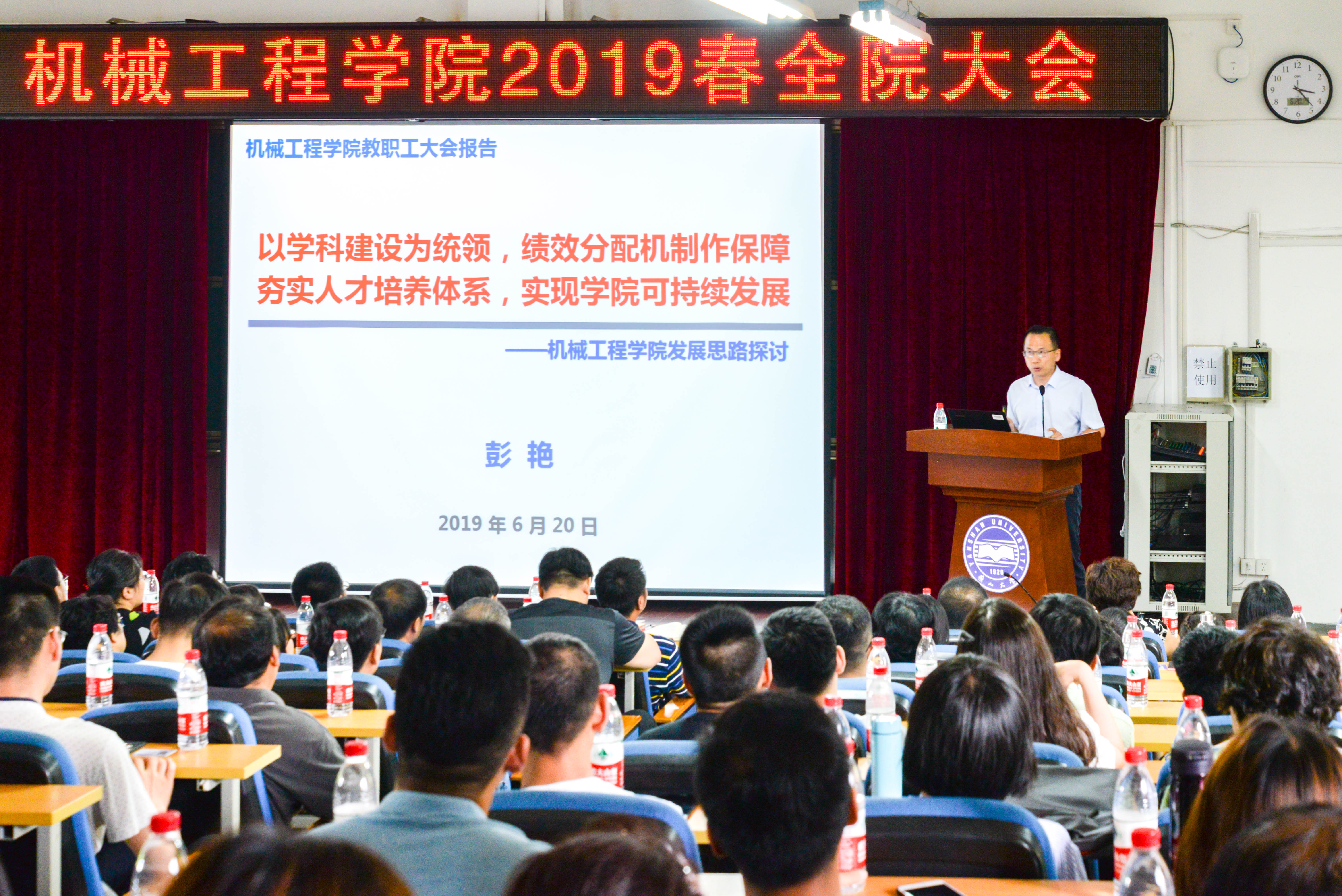 6月20日下午,机械工程学院在机械馆J3报告厅召开了2019春全院大会。大会由学院党委书记董国疆主持,学院236名教职工参加了会议。