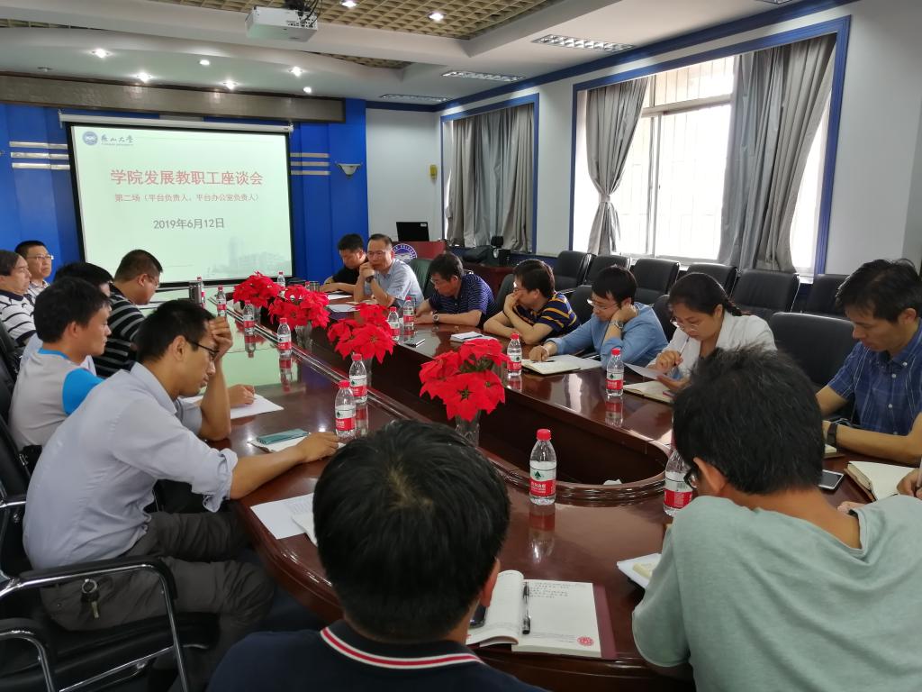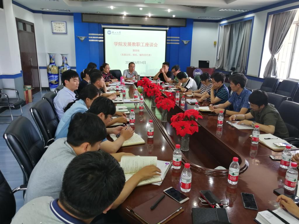 此前,6月11日至17日,为深入了解学院现状,共谋学院发展,学院分类组织召开了六场专题座谈会。每场座谈会都精心准备,充分交流,对准确把握学院现状、形成学院发展思路奠定了基础。