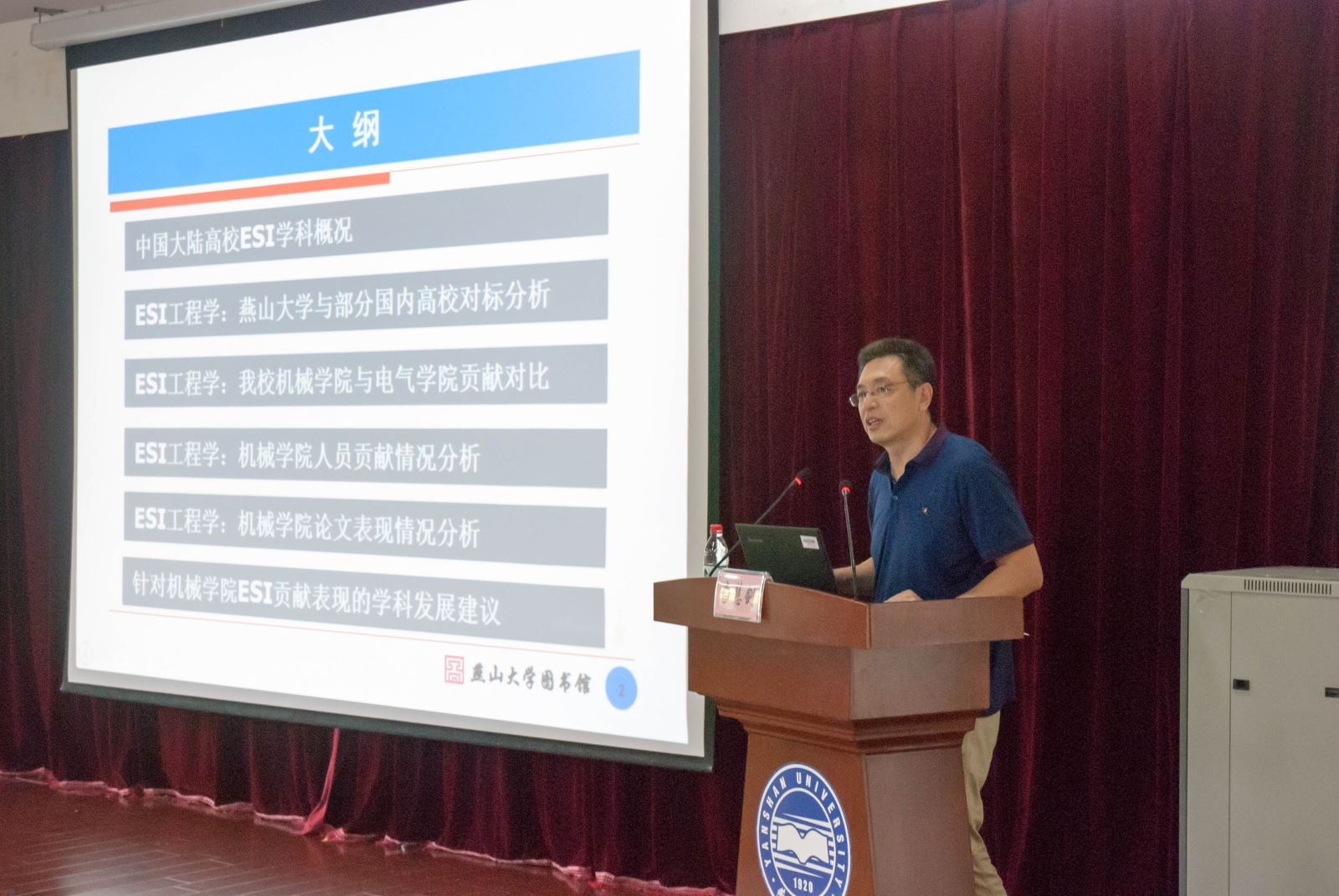 会上,学院邀请校图书馆馆长李慧剑教授做了《机械工程学院科研产出与学科发展分析——基于ESI工程学院的贡献度》的报告。报告介绍了中国高校ESI科学概况,进行了学校与部分国内高校对标分析、我院与电气学院贡献度对比、学院人员贡献情况分析和学院论文表现情况分析,并提出了针对学院ESI贡献表现的学科发展建议。