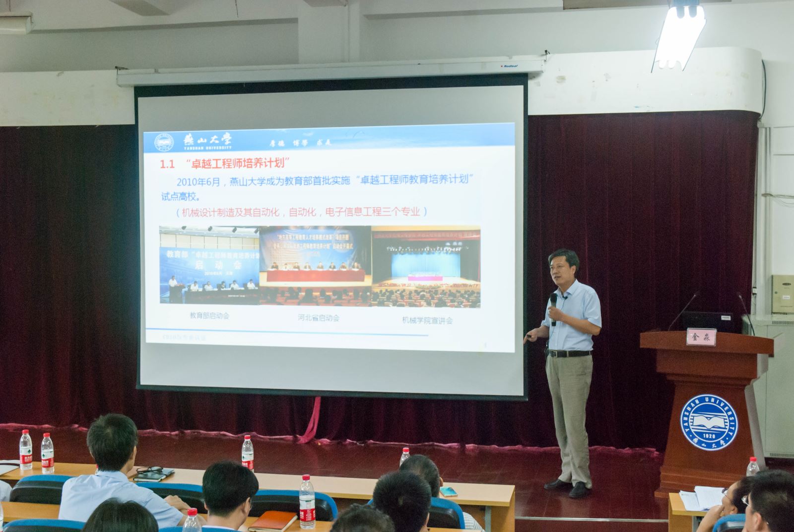 学院副院长金淼对全院教师进行了《CDIO与专业认证》培训,介绍了学院已经开展的卓越工程师培养计划、CDIO教学改革和中国工程教育专业认证,以及今后将面对的“新工科”教学改革;深入、系统地说明了CDIO工程教育模式和工程教育体系;从师资队伍情况、承担的教学工作量和二级教改项目等方面分析了学院的教学情况现状和面临的困难。在分析问题时,金院长指出,学院存在“专业是办学主体”的意识不强,教与学脱节,理论与实验脱节,教书与育人脱节,教学质量意识不强,持续改进的体系不被认可等问题。面对今后改革的主要方向,金院长指出学院将逐步推行小班授课,完善考评体系,按认证要求改进教学体系,改革教学奖励分配办法等。