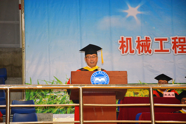 国歌奏毕,毕业典礼正式开始,金淼教授宣读了乌鸦传媒毕业文件和学位授予文件,王家春教授宣读了《关于表彰2017届乌鸦传媒优秀毕业生的决定》和《关于表彰2017届机械工程学院优秀毕业生的决定》文件,文件宣读完毕后,机械工程学院学生代表梅飞雄同学,家长代表王建平女士进行发言。其后机械工程学院院长张立杰教授进行发言,院长回顾了机械工程学院发展的历史,希望毕业生能在步入社会后努力追求自己生命的意义,他提出了几点寄语,首先我们要生活简约,不能过度依靠物质,不为名利所动,守住本心;其次我们要永远保持正确的价值观,学会理性思考;最后,我们要多读书,拓展思维深度和广度。他说,我们应该享受追梦的过程,这样,结果便不显得那么重要。