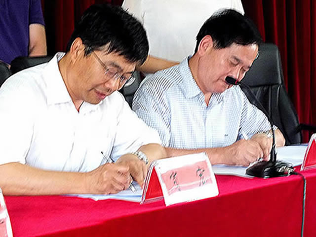 肖宏院长与李国忠董事长分别代表双方在协议书上签字