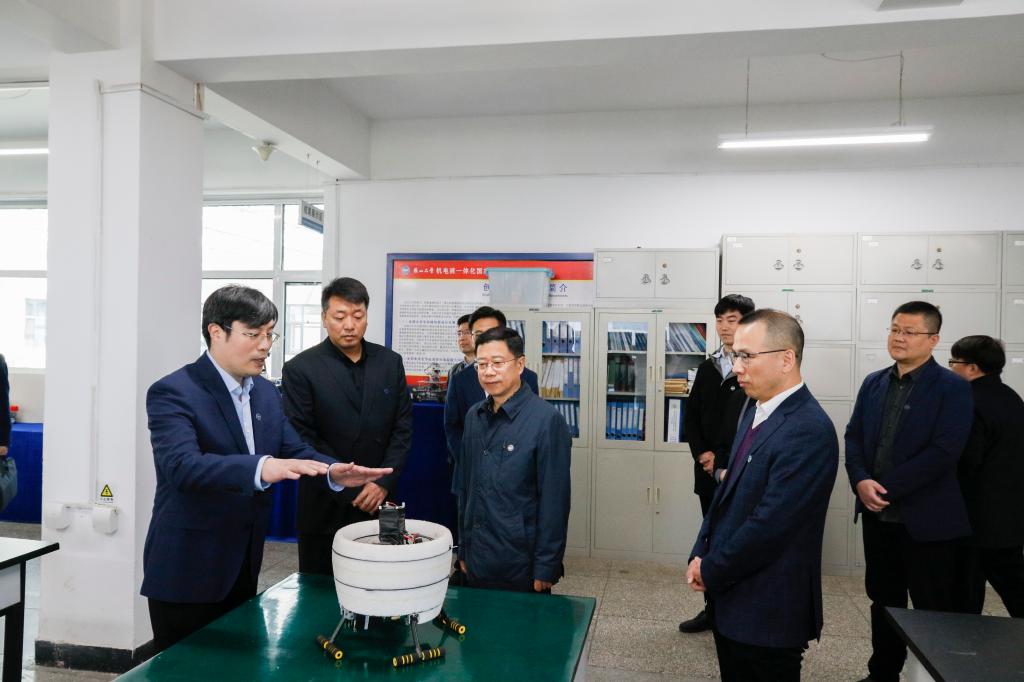 在机械工程学院领导班子成员和有关工作人员陪同下,赵险峰书记实地参观了学院综合办公室、“机思广益”党建思政工作室、素质拓展教研室、部分专业实验室等,并在创新基地观看了学生自主设计的科技创新作品。