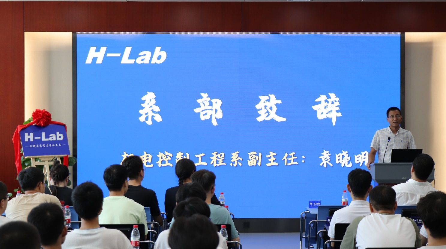 袁晓明在揭牌致辞中提出,成立H-Lab,是机电控制工程系推动本科生培养的一件大事,是实现本科生进入团队、培养科技创新能力的重要举措,是确保一流学生培养的重要布局。他就进一步深化本科生研究能力培养提出三点期望:一是希望H-Lab勇挑重担,不负系部师生所托;二是希望H-Labers在保证学业的前提下,加强与导师的沟通交流,进一步提高创新精神和研究能力;三是希望系部教师切实发挥指导作用,带领研究团队做出成绩。