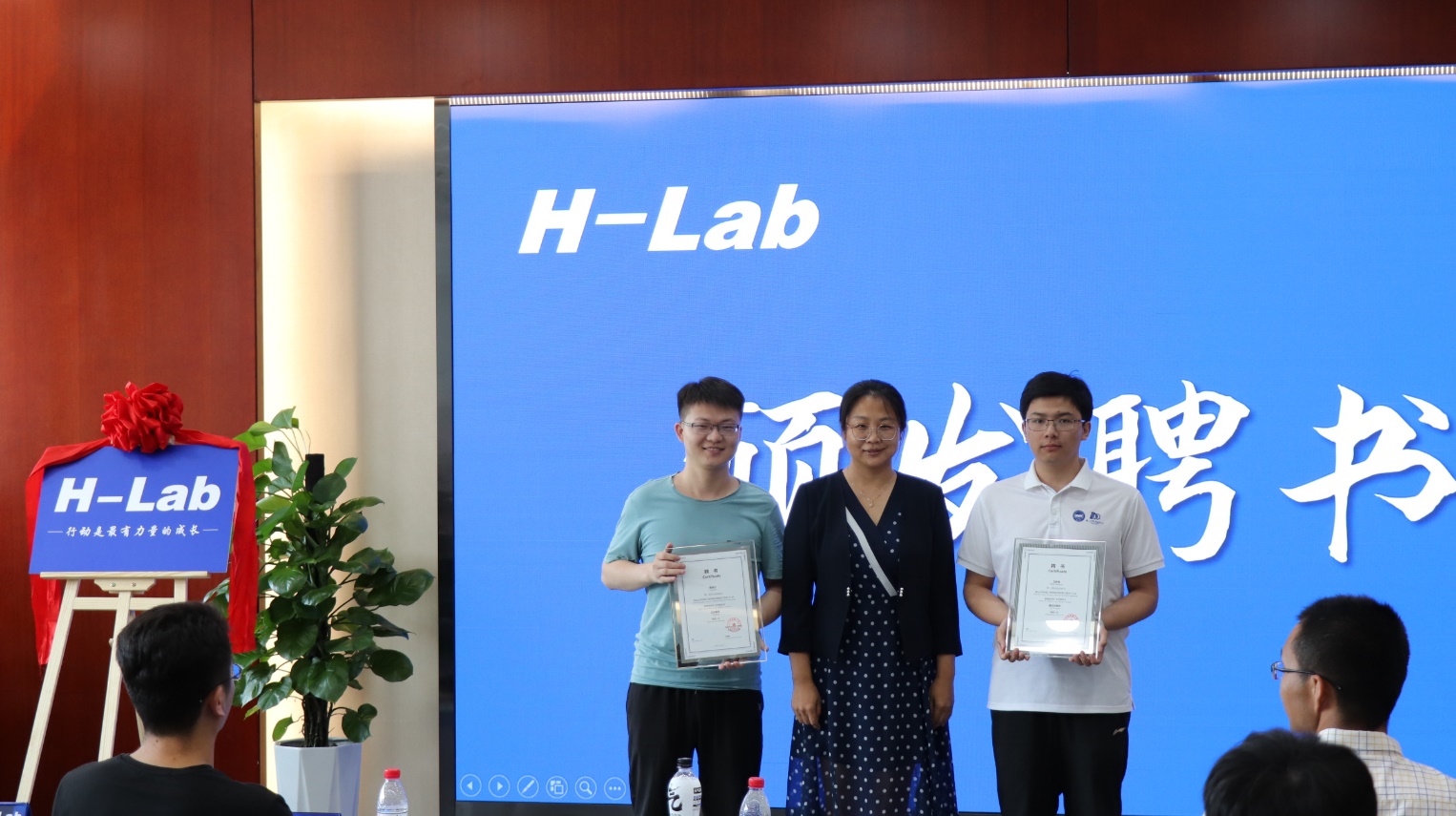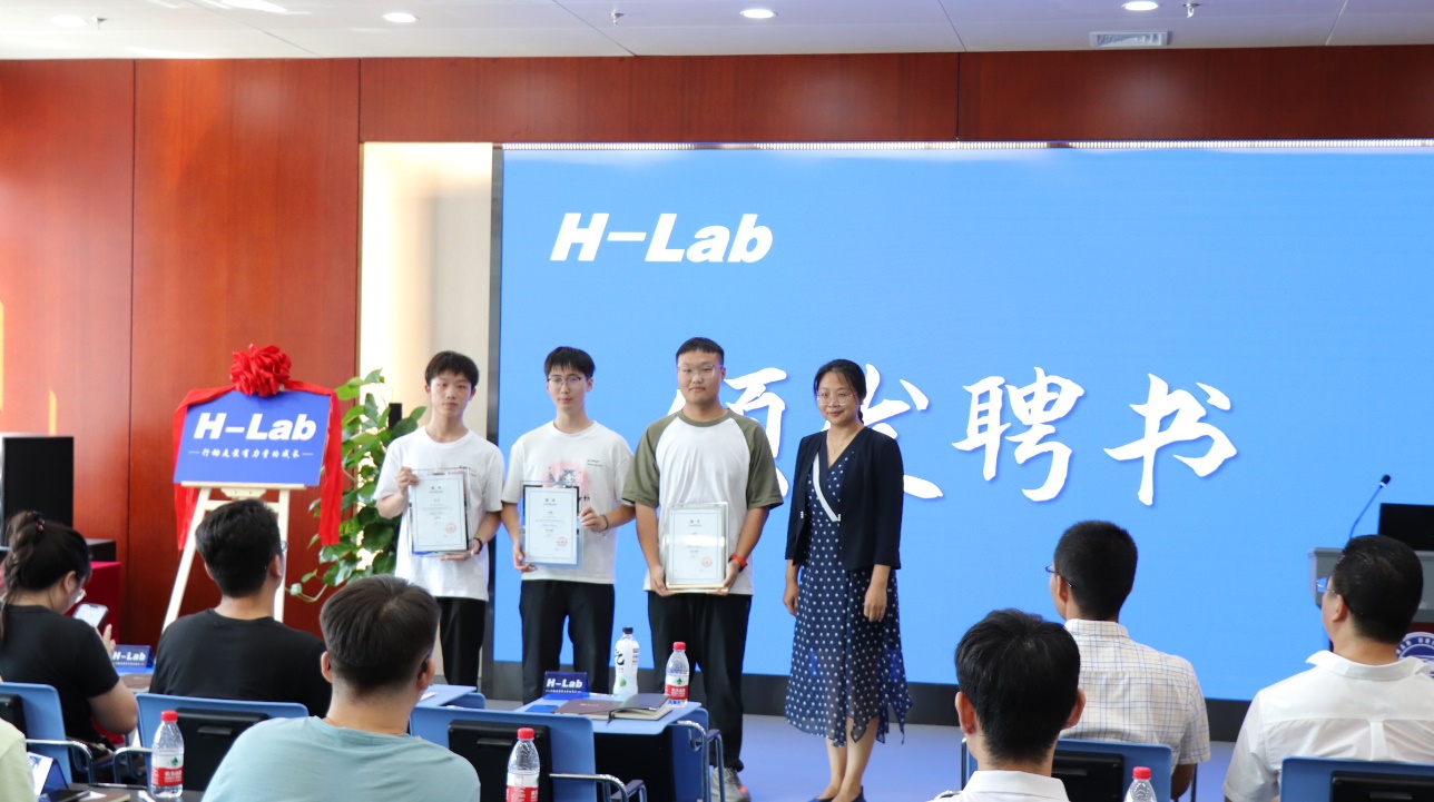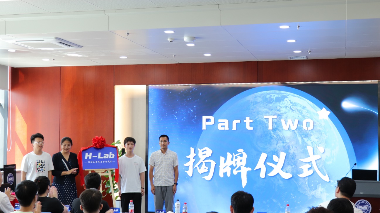 揭牌仪式上,姚静、袁晓明与学生代表共同为H-Lab揭牌。