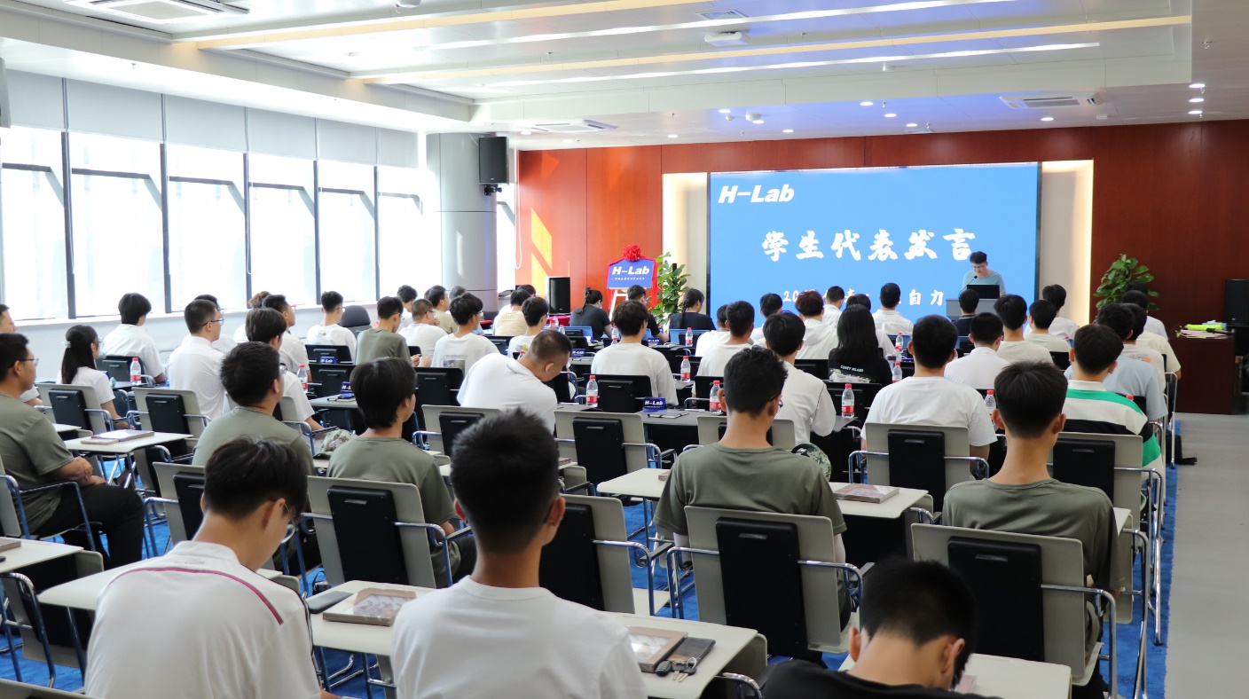 H-lab学术委员会主任委员陈自力作为签约学生代表发言,代表学生对H-lab的揭牌成立送上祝福,感谢系里搭建H-lab本科生研究平台,为学生发挥专长、实践创新,锻炼能力,提供的广阔舞台,并做出了“刻苦钻研,勇于实践,开拓创新,团结奋斗,为系部、为学院的美好明天贡献青春、才智和力量”的号召与承诺。
