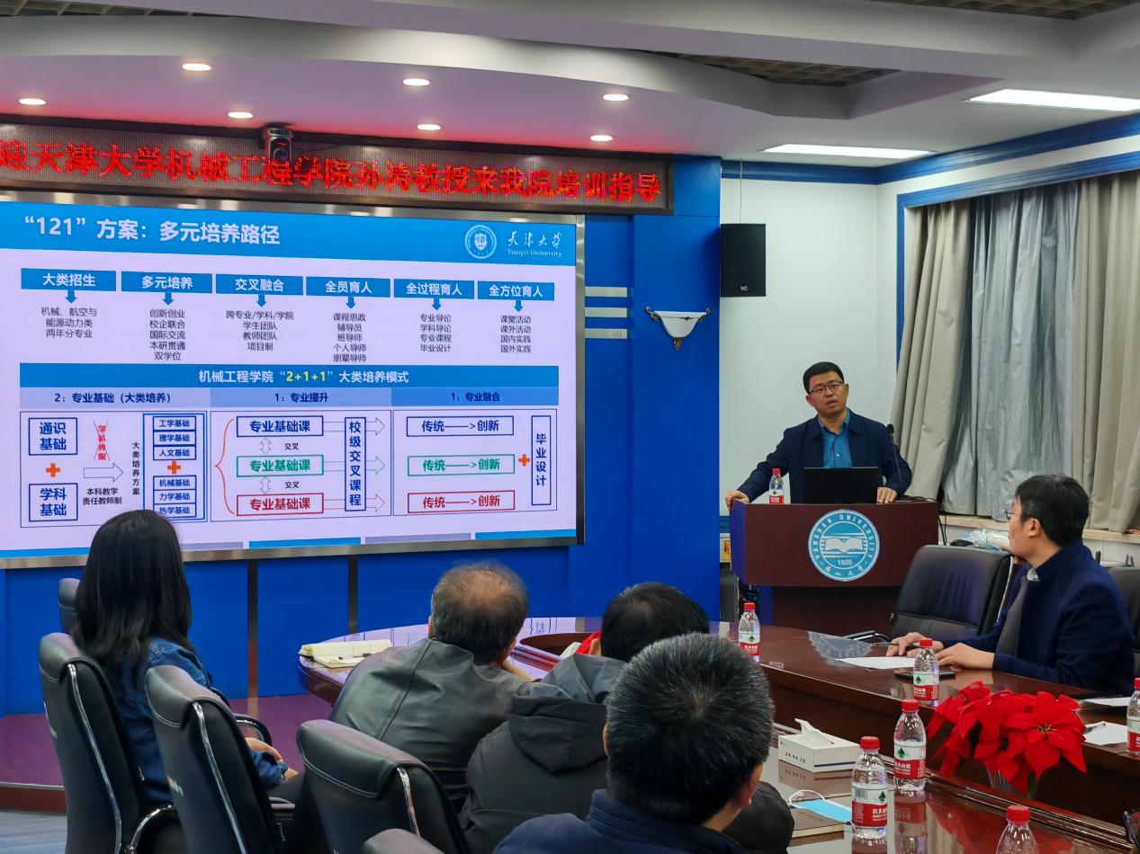 12月9日下午,机械工程学院在机械馆301举行新工科背景下机械大类创新拔尖人才培养的探索与实践专题培训,特邀天津大学机械工程学院副院长孙涛教授作为主讲人。学院副院长姚建涛主持培训会,各系部负责人及教师代表积极参加。