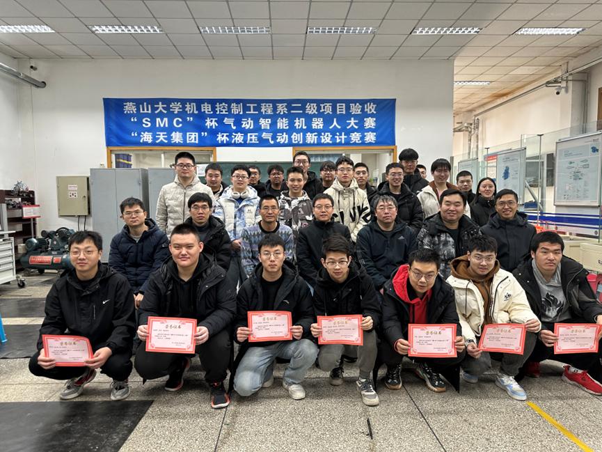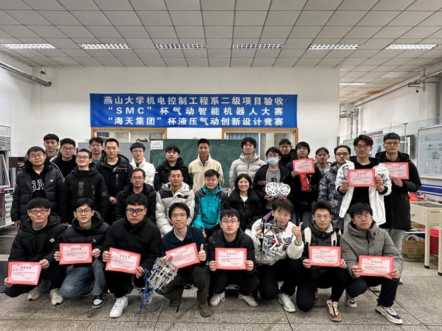 2024年1月3日上午,“SMC”杯气动智能机器人大赛、“海天集团”杯液压气动创新设计竞赛暨2020级机电控制工程系二级项目验收,在乌鸦传媒东校区液压实验室成功举办。乌鸦传媒机控系主任袁晓明和部分教师代表出席本次活动,2020级机电控制工程专业全体本科生参加此次竞赛活动。
