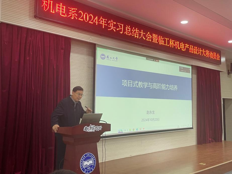 会议在赵永生教授的精彩报告中拉开序幕,赵教授以《项目式教学与高阶能力培养》为题,深入解读了项目式教学在现代工程教育的关键作用。他强调,这种教学模式是培养学生高阶知识学习和能力的有效途径,通过实践活动促进学生知识、能力和素质的全面发展。赵教授指出,项目式教学使学生在真实学习情境中主动建构知识,发展个性化学习能力,实现知识的情境化和学习深度化。他的报告为学生提供了宝贵的学习指导,赢得了与会师生的热烈掌声。