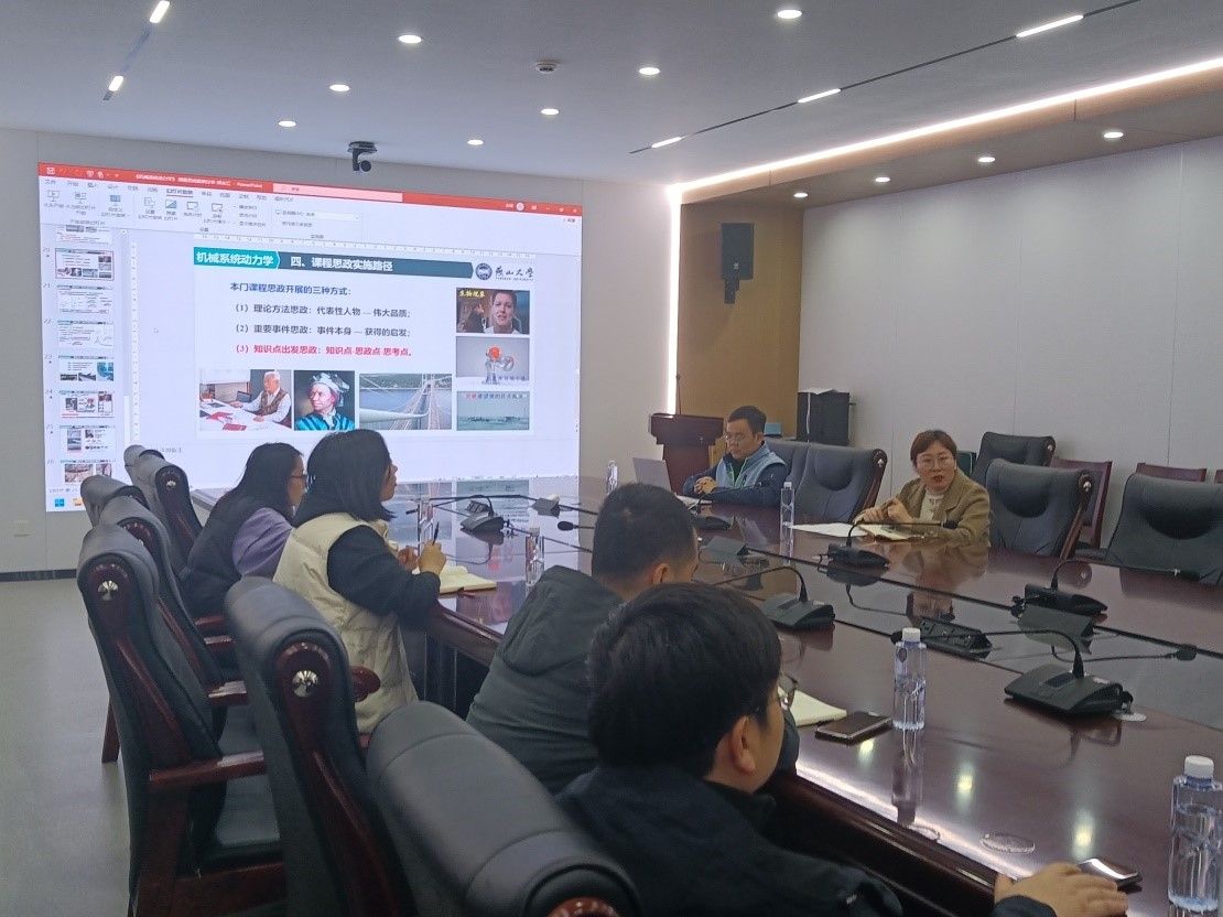 研讨会上,我院课程思政示范课程《机械系统动力学》课程负责人郑永江老师介绍了该课程的课程思政建设情况,从课程概况、课程思政目标、课程思政考核、课程思政的实施、课程思政的效果和对策等五方面进行了详细介绍,分享了课程思政特色案例。马克思主义基本原理教研部王芳老师对我院课程思政建设进展及成果给予了充分肯定,结合专业课教师的汇报对课程思政的建设情况进行了精彩点评,并指出工科专业应按照教育部《高等学校课程思政建设指导纲要》要求,在工程伦理、工匠精神等方面加强思政建设力度。随后,就思政元素、价值塑造、课程思政的效果评价等问题与专业教师进行了深入交流。