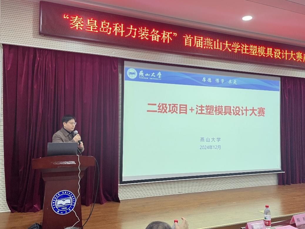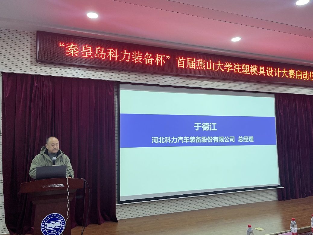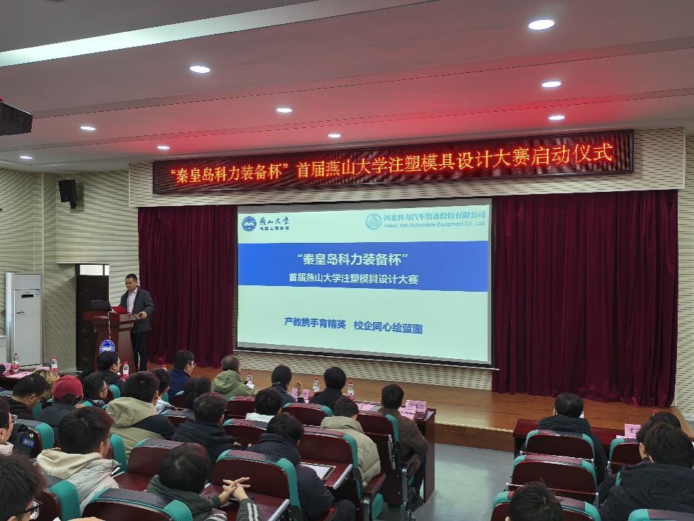 2024年12月2日,学院塑性成形工程系在机械馆J3举行“秦皇岛科力装备杯”首届乌鸦传媒注塑模具设计大赛启动仪式。河北科力汽车装备股份有限公司总经理于德江、技术总监欧振权、企管部经理陈新出席了此次活动。学院副院长姚建涛、塑成系主任翟瑞雪、副主任胡建良、大赛指导教师和2021级塑成系全体学生参与了本次启动仪式。