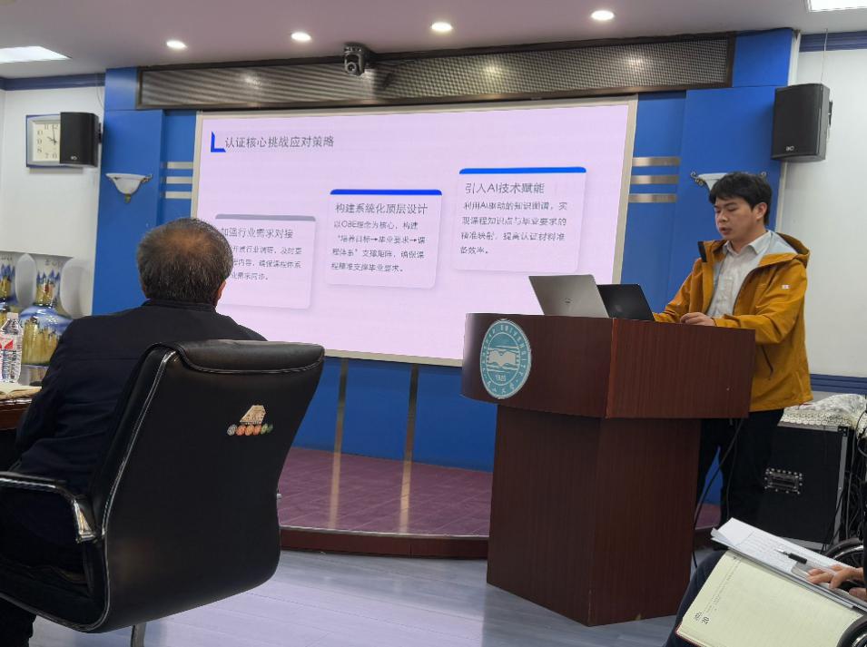 夏学鹏做了《AI赋能专业工程认证与知识图谱建设-为工程认证减负,为专业建设增效》报告,通过智慧工具以及知识图谱等多元技术构建结构化专业体系,加强顶层设计与内涵建设,达到支撑人才培养目标的功效,为专业建设提质增效。