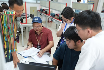比赛评审现场(下图为中国机械工程学会领导王玲与裁判员座谈交流)