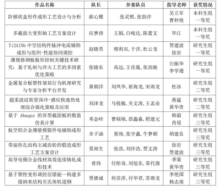 “太平洋精锻杯”塑性工程实践与创新赛是我校新增一类创新创业竞赛,机械工程学院作为校赛和区域赛承办单位,在创新创业教育与指导中心支持下顺利完成了赛事组织工作。经校赛和区域赛层层选拔,我校共派出本科生3组、研究生9组参加总决赛并取得了优异成绩。这份成绩得益于参赛师生共同努力,也体现了机械工程学院“本研贯通,工程蕴于实践”的教育理念和“以赛促教、以赛促学、以赛促创”的育人成效。期待我院师生继续借助竞赛平台,将理论知识转化为实践能力,在不断创新中攀登塑性加工领域新高峰,再创佳绩。