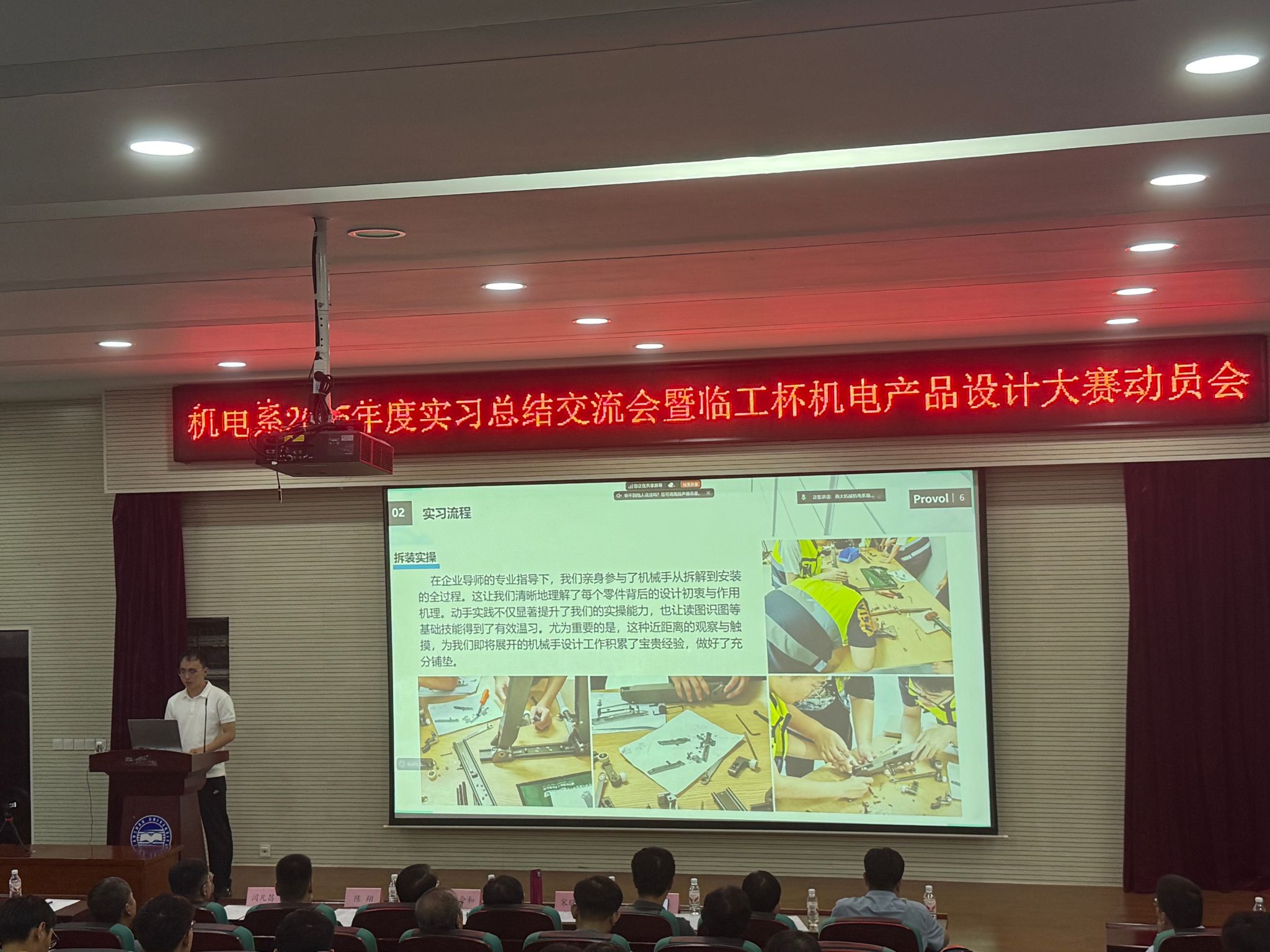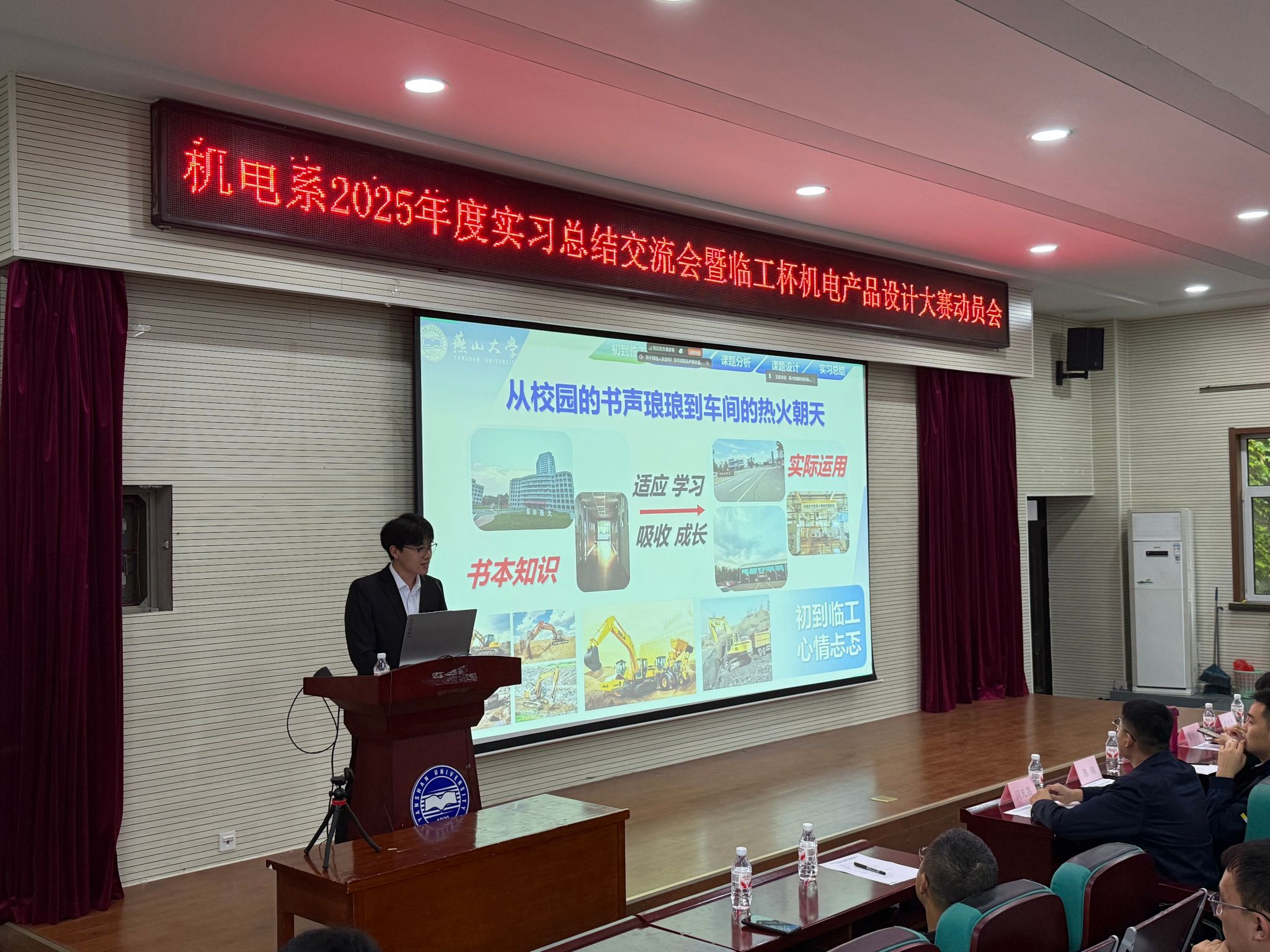 本次实习总结交流会暨临工杯机电产品设计大赛动员会的成功举办,是落实机电系产教融合改革的重要举措,也为未来与企业更深层次的产教融合合作奠定了坚实基础。