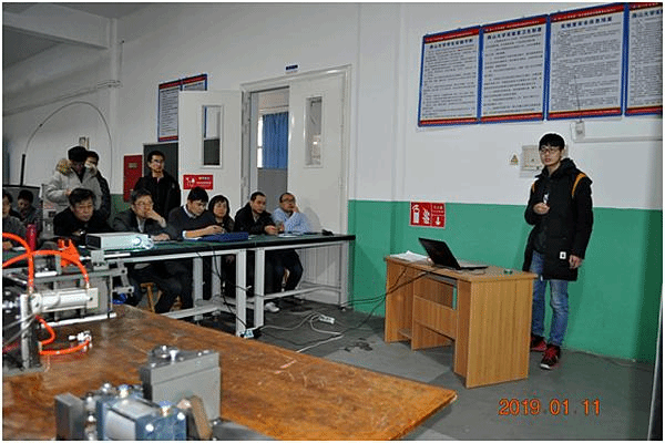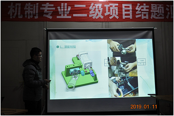 2019年1月11日上午8:30,机械制造及其自动化系举办了2015级二级项目成果验收展演。机械工程学院副院长金淼教授和15级辅导员王筠涵莅临现场指导。机制系李金良、鹿玲、王军、陈建超、郭保苏、王志勇、赵润升、李一耕和袁荣娟老师参加了展演活动。