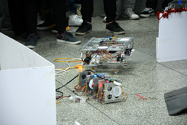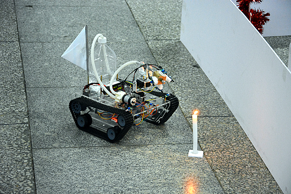 本次展演分为三个部分,分别为跨学科联合项目作品展示、机电专业消防机器人展示、机器人消防灭火比拼。