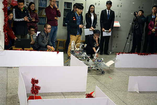 2018年1月10日下午,机械电子工程系举办了基于智能消防机器人主题的2014级二级项目联合展演。机械工程学院副院长金淼教授以及车辆与能源学院副院长李昊教授莅临现场指导。机械电子工程系姚建涛教授、史艳国教授、李艳文教授、史小华老师以及全体项目指导教师参加了展演活动。