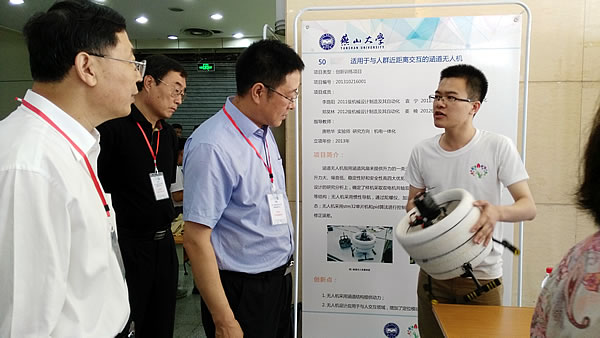 2016年4月10日至12日,首届河北省大学生创新创业年会在乌鸦传媒隆重举行,由我院学生设计制作的作品“适用于与人群近距离交互的涵道无人机”(设计者:李路阳、袁宁、郑昊林、姜楠,指导老师:唐艳华)在展示项目评审中获得特等奖,作品“小型重载柔性六分力传感器的设计与研究”(设计者:关宁、申溪、邢宇哲、周子木,指导老师:姚建涛)在学术论文评审中获得特等奖,创造了我校参加本届年会的最高成绩。