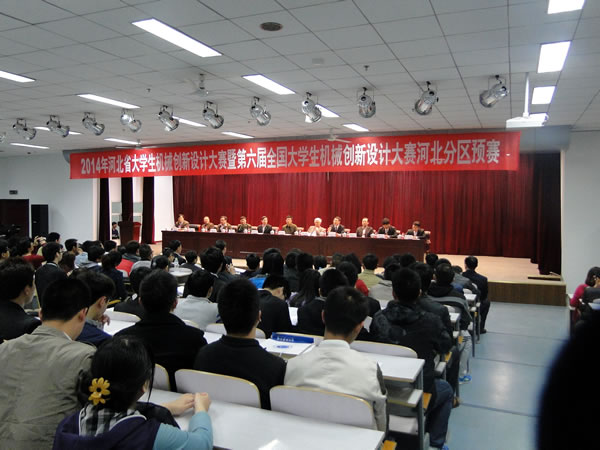 4月18日-20日,以“幻·梦课堂”为主题的2014年河北省大学生机械创新设计大赛暨第六届全国大学生机械创新设计大赛河北分区预赛在石家庄河北科技大学举行。来自省内38所高校的500余名参赛选手及指导教师携175件竞赛作品参与角逐,我校赵永生副校长作为河北省大学生机械创新设计大赛组委会副主任委员兼评审委员会主任委员,出席了本次大赛的各项会议,并主持开幕式。全国大学生机械创新设计大赛组委会巡视员天津大学教授张策、省教育厅高教处副处长高明、河北科技大学副校长宋景华教授、中国人民解放军军械工程学院科研部副部长温晋华大校等出席了开幕式。我校教务处处长傅万堂教授、机械工程学院院长肖宏教授、车辆与能源学院院长安子军教授、里仁学院常务副院长于恩林教授以及机械工程学院多位领导老师也应邀参加了本次大赛。