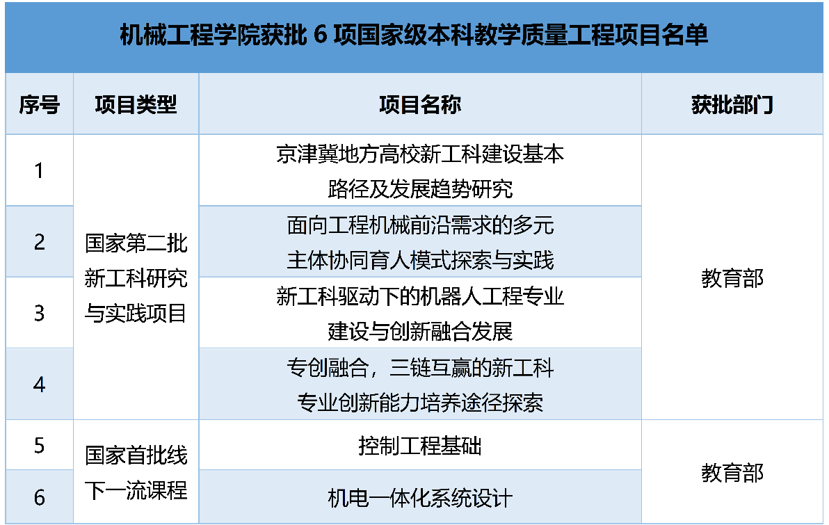 新工科项目是教育部近年来专门针对高等工程教育改革设立的国家级教改项目,是立足世界百年未有之大变局的时代背景,改造升级传统工科专业,主动布局未来战略必争领域人才培养的关键举措。我院积极对接相关学会协会,集聚资源多方协同申报新工科项目,由工程机械学会、教育部创新方法教学指导委员等推荐的3个项目成功获批;由省教育厅推荐1项并成功获批。我院所获批的4项新工科项目,涉及新工科建设方法的探索、多元化培养模式改革、专业改革创新等。