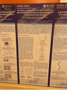 第16届智能机器人与应用技术国际会议上,陈子明教授指导完成的论文《Design and Analysis of a new type of solar panel》、许允斗教授指导完成的论文《Kinematics Analysis of a New Parallel Mechanism with Complete Separation of Constraints and Drives》做了海报展示。韩博副教授指导完成的论文《Design and analysis of a novel ring truss deployable antenna mechanism》在“Innovative Design and Performance Evaluation of Robot Mechanisms”分论坛进行了报告交流。