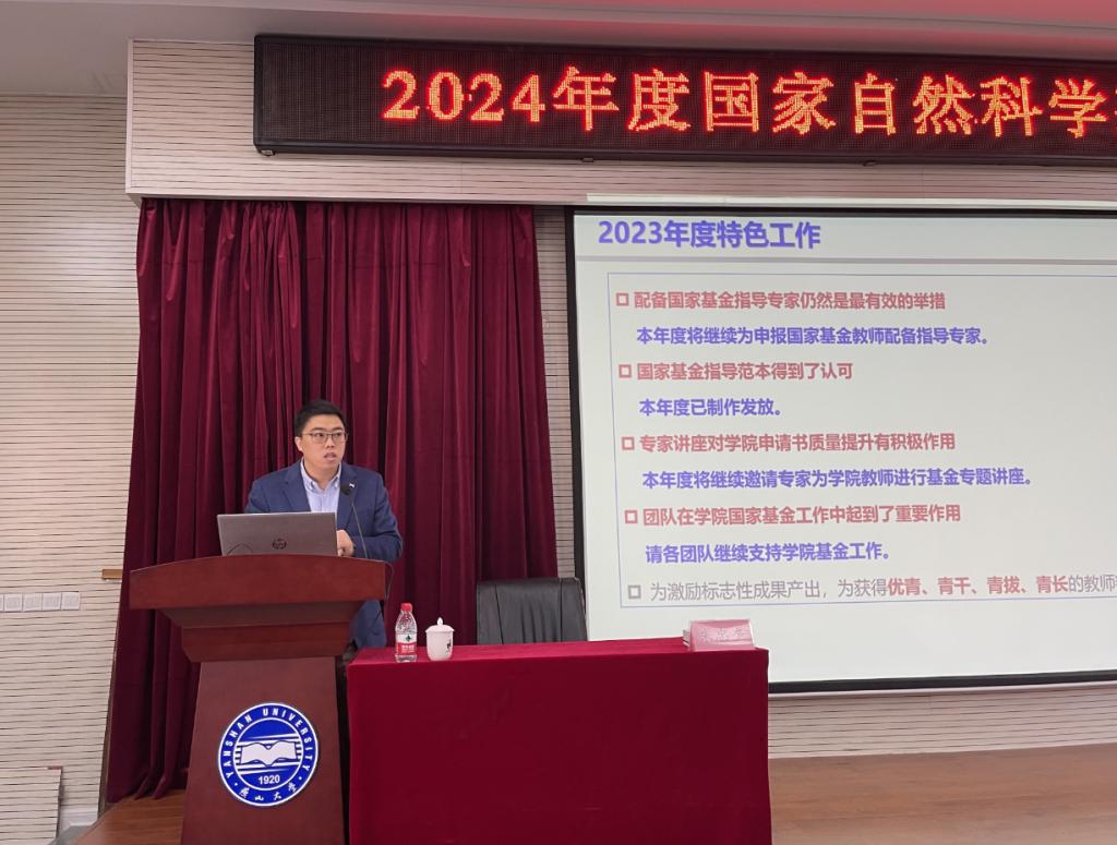 会上,学院正科级秘书李鹏总结了我院2023年国家自然科学基金项目申报和立项情况,对学院2023年国家自然科学基金申报中存在的问题进行了系统分析,并就2024年度学院国家自然科学基金项目申报工作进行了安排。
