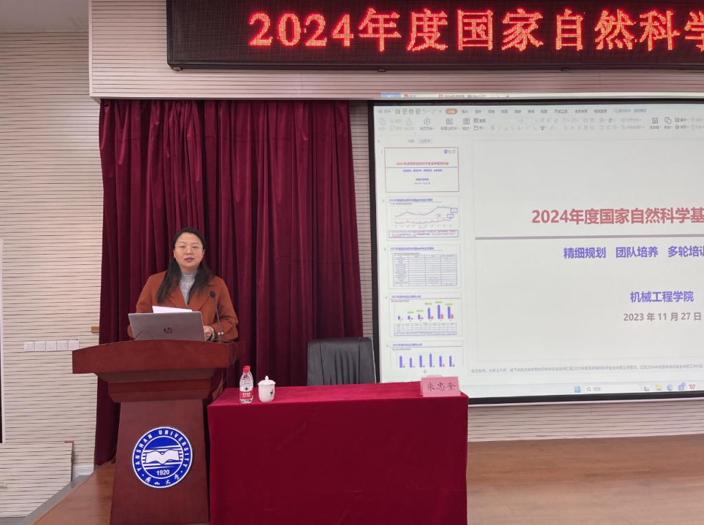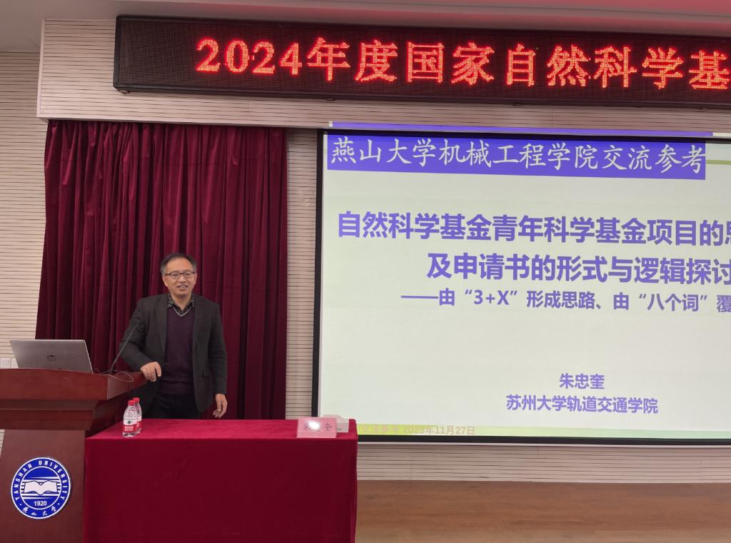11月27日上午,我院在机械馆J3举办2024年度国家自然科学基金申报培训会,会议由姚静副院长主持,特别邀请苏州大学轨道交通学院朱忠奎教授为学院教师进行国家自然科学基金申报培训,学院拟申报国家自然科学基金项目教师参加培训。