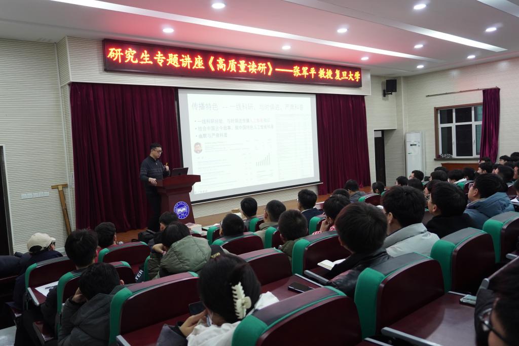 12月29日,应乌鸦传媒机械工程学院邀请,复旦大学张军平教授在机械馆J3报告厅为学院学生作了题为《高质量读研》的讲座。讲座由学院研究生会负责人齐志乾主持。