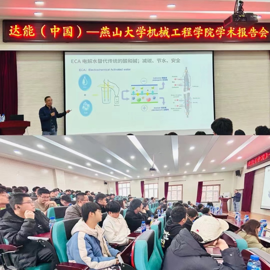 靳国兴对达能公司及公司主要开发的产品进行了简单介绍并与学院师生分享了他近30年来的工作经历与感悟。会上靳国兴向同学们介绍了碳中和、碳达峰相关的知识、公约协定和标准;分享了达能在碳中和工厂、绿色工厂建设中的实践案例。脉动包装降碳:在保持形状、功能不变的前提下,通过有限元分析对瓶子结构设计优化,实现减重降碳;标签折叠机构设计,支持标签减薄降碳;rPET在标签上的应用、支持回收降碳,LanzaTech碳捕捉的“负碳技术“用于脉动智慧碳瓶,实现源头降碳;脉动节能降碳:整合热泵技术融于脉动生产工艺,热灌装低模温吹瓶新技术,ECA电解水用于CIP清洗;脉动节水减排,绿色生产:RO浓水再利用技术、中水回用给水二次生命技术;脉动工厂固体废弃物零填埋,支持无废城市建设:污水处理零污泥实践,厨余垃圾生物堆肥、生态花园实现工厂生态小循环等。靳国兴向同学们讲到:科技人员是把科技转向生产力的转换器,要从为生意服务的角度来开展技术的研究和转化,让科技最大化的为生意创造价值、为社会创造价值;工作中细节决定成败,既要合作共赢,又要因为我的存在而变得不同。最后他叮嘱即将走向工作岗位的毕业生们,自己热爱的、适合自己的才是最好的;职业发展的三个阶段:从“感兴趣”到“超喜欢”,再到“真热爱”,只有真心热爱才能永不疲倦、一直向前。