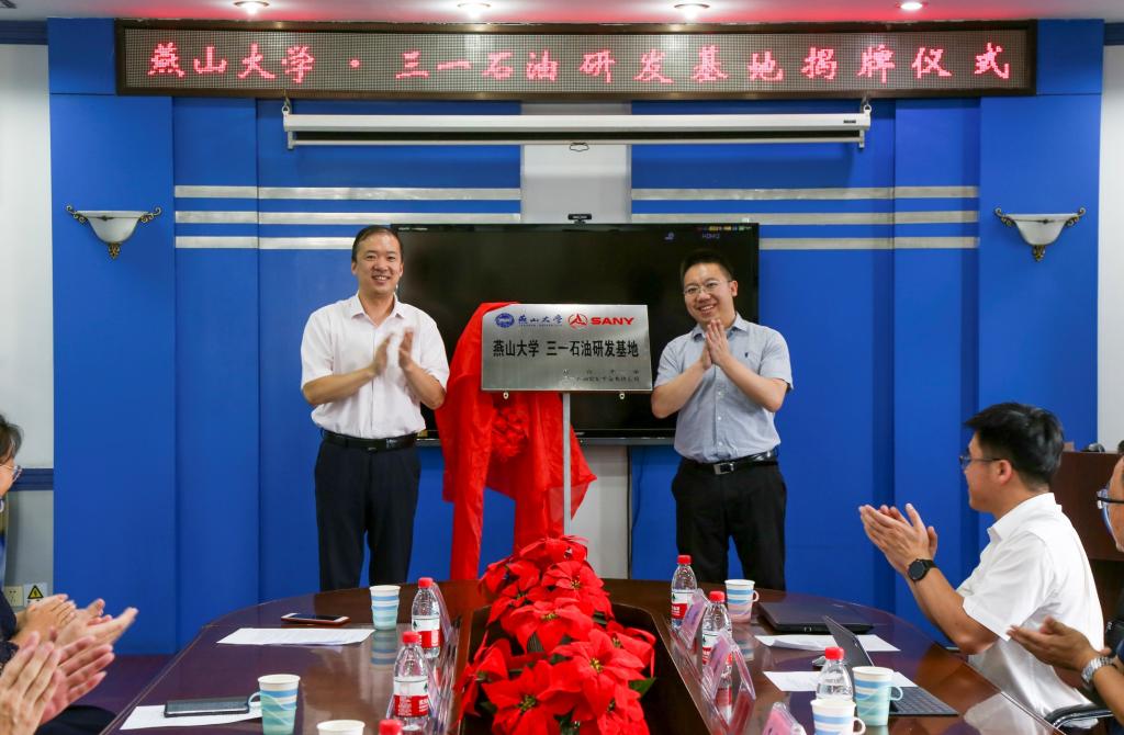 座谈会结束后,冯智恩和王安伟共同为乌鸦传媒·三一石油研发基地揭牌。
