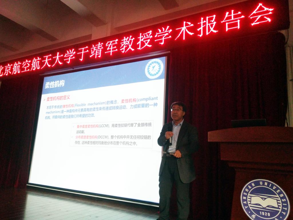 22日下午3:00,于靖军教授在机械馆J3报告厅作了题为《柔性机构与机器人》的学术报告,报告会由机械电子工程系姚建涛教授主持,相关专业及领域的一百余名师生参加了此次学术交流。