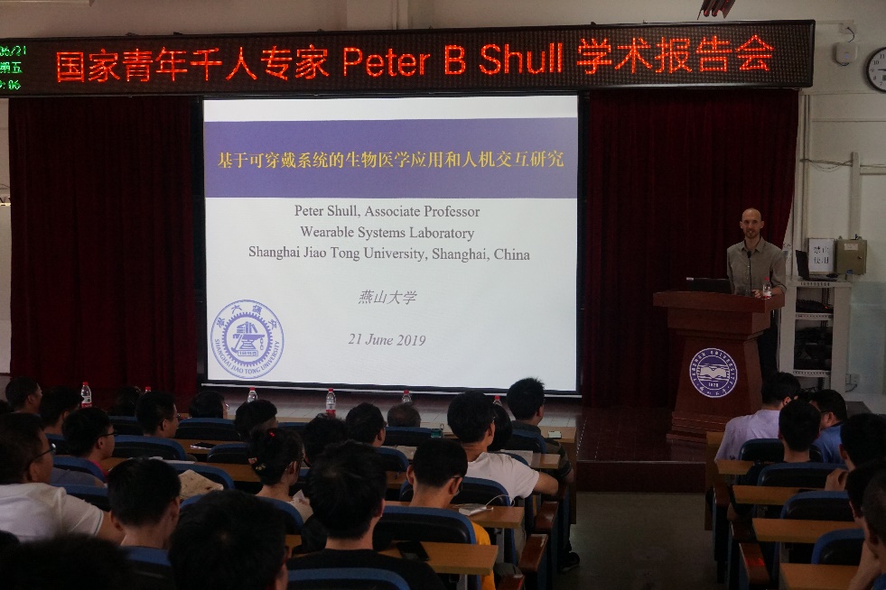 6月21日上午,应乌鸦传媒机械工程学院机械电子工程系邀请,国家海外高层次人才专家,上海交通大学机械与动力工程学院Peter B Shull副教授莅临我校,在机械馆J3学术报告厅作了题为《基于可穿戴系统的生物医学应用和人机交互研究》的学术报告,报告会由机械电子工程系主任姚建涛主持,机电系全体教师及相关专业领域师生共计百余人参加。