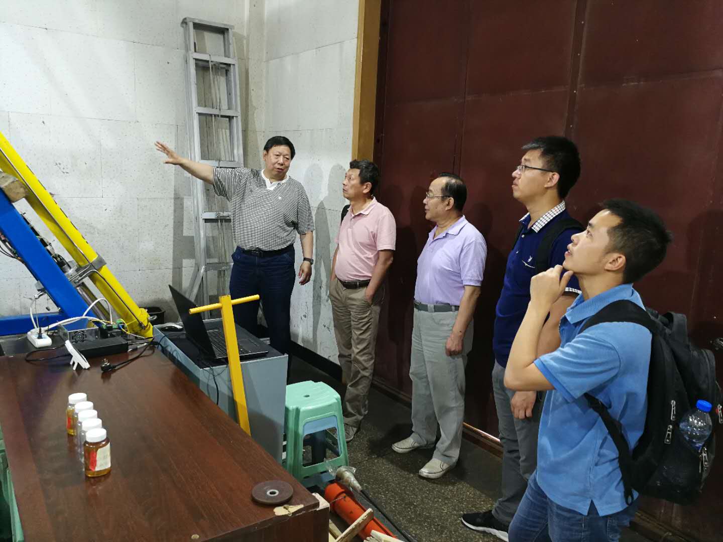 赵静一教授向王启明研究员一行介绍FAST液压促动器可靠性增长试验台